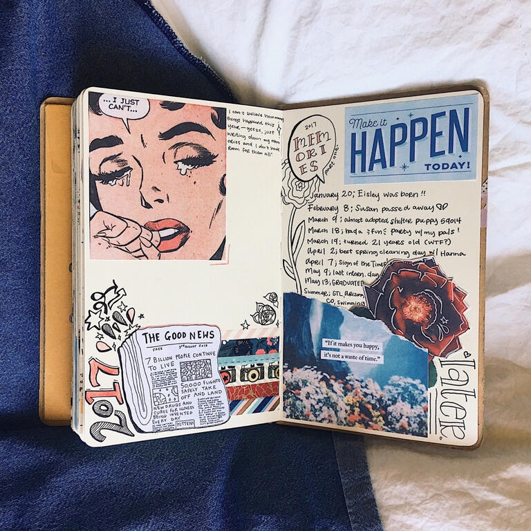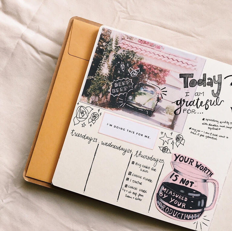 listen to music; binge-watch youtube; hang out with my husband & friends; play with my dog/furry son, beans; journal; dance; create; take polaroid pictures; make playlists for every mood I have; watch k-pop choreo; listen to podcasts; doodle;