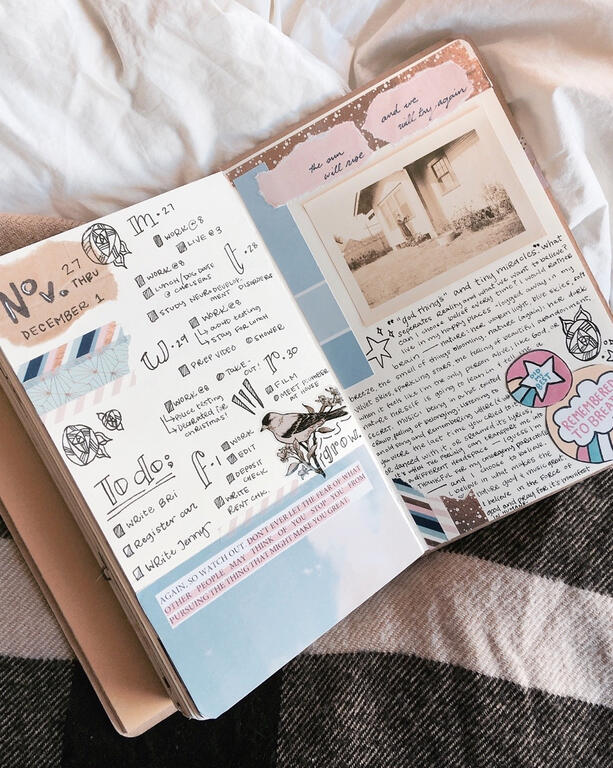 listen to music; binge-watch youtube; hang out with my husband & friends; play with my dog/furry son, beans; journal; dance; create; take polaroid pictures; make playlists for every mood I have; watch k-pop choreo; listen to podcasts; doodle;